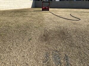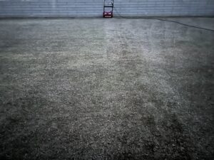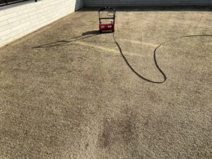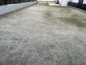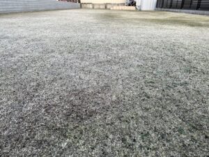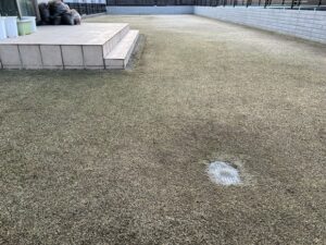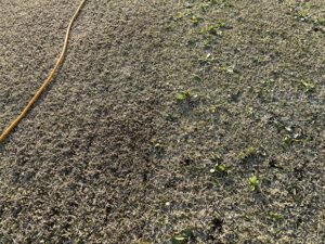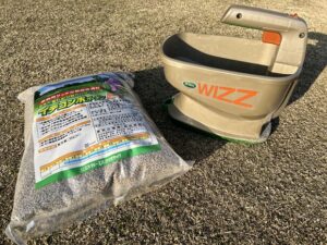 続けてイデコンポを散布して、サッチや刈り芝が土に還ってくれることを期待する。
