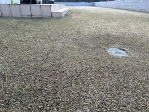 バーチカルカットのあと、同日20日夕方と翌日21日午後に芝刈り。前回と同様に、排水桝から放射状に。