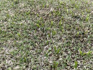 それにあわせて芝生の芽も出だした。